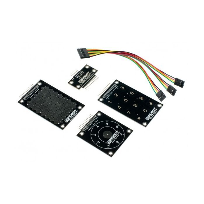 Now, it is time to add a more fancy interactive way to your project. This DFRobot touch kit comes with three types touch sensors. An iPod style wheel touch, a keypad touch that supports backlit, and a grid touchpad which can recognize something unique.